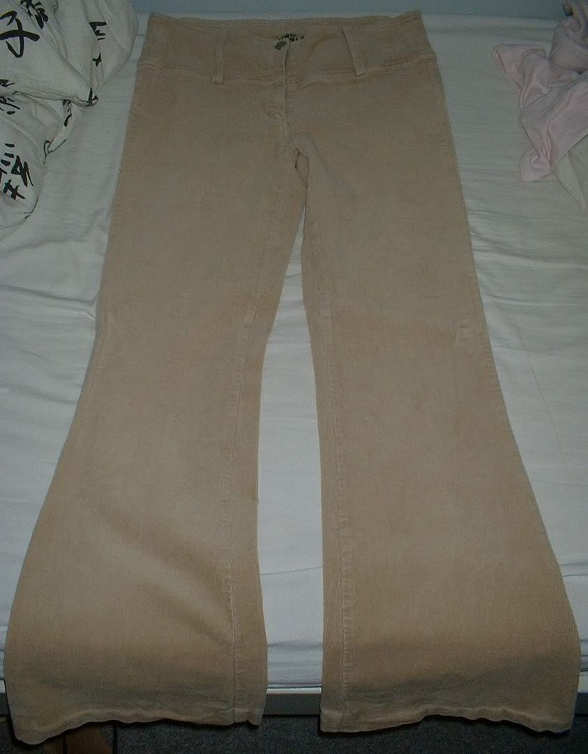 Camelkleurige ribbroek met uitlopende pijpen van Vero Moda, maat 38.