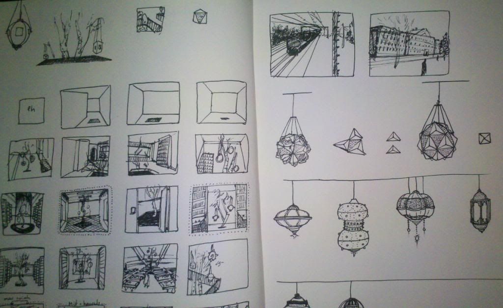 - één portretstudie in inkt - drie constructie-oefeningen - een set stockillustraties (op papier, nog niet in Illustrator) - uitgebreide perspectiefstudie (met papieren schaalmodel!) - ~40 schetsjes van dit kaliber Was ik maar altijd zo productief. Nu is het bedtijd. |